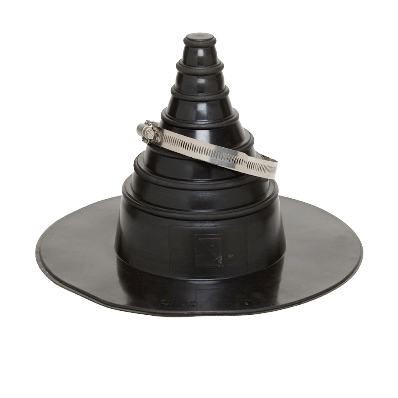 De QuickSeam Pipe Flashing ook wel heksenhoed genoemd, is een voorgevormde en zelfklevende EPDM-manchette, gebruikt voor de afdichting van ronde, van bovenaf toegankelijke buisdoorvoeren met een diameter van 25 mm tot 150 mm.Dit is een voorgevormde manchette: Ideaal voor het gebruik van kabels, buizen, airco leidingen etc.Te gebruiken voor het inwerken van buisdoorvoeren van 2,5 cm tot 15 cm diameter.De QuickSeam Pipe Flashing past op verschillende buismaten en moet voor de installatie op de juiste diameter gesneden worden.Gebruik altijd eerst de primer (activator) voor het reinigen en voorbehandelen van het EPDM-membraan.Hierna kan deze pipe flashing op de EPDM aangeheeld worden. Doormiddel van de kleefkracht van de primer vulkaniseert deze op de EPDM, waardoor er een waterdichte afsluiting ontstaat.Een slangenklem voor het uiteindelijke vastzetten wordt meegeleverdInhoud: EPDM Heksenhoed + roestvrij stalen klemringen inbegrepen